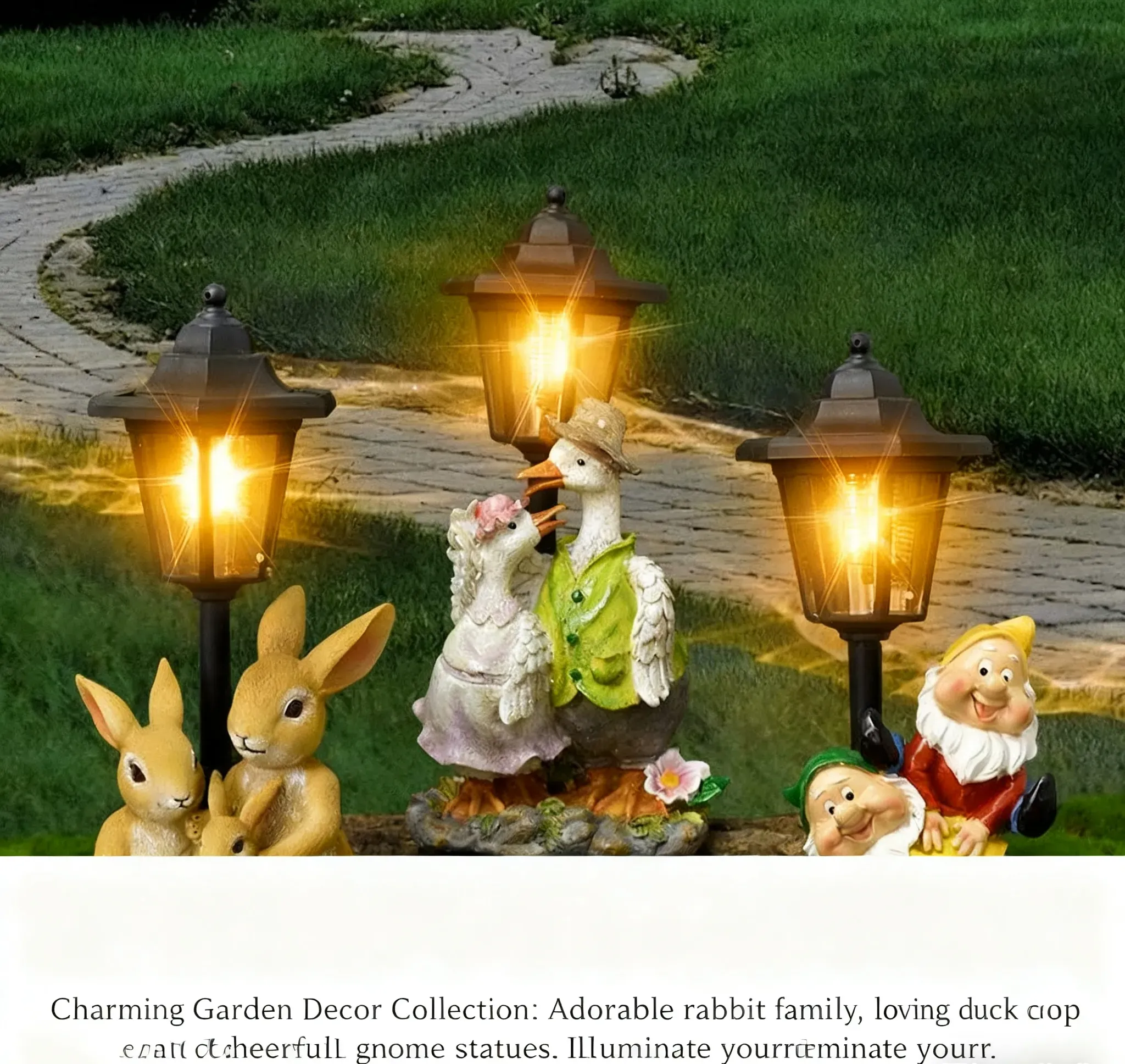 Who can resist bringing a fairytale world into their own yard? 🌳 These solar garden lights feature vivid shapes like elves, adorable rabbits, and cute ducklings, each one a meticulously crafted work of art. They're eye-catching decorative accents during the day, transforming into gentle illumination at night, imbuing your garden or patio with a magical ambiance. They're both luxurious and fun~