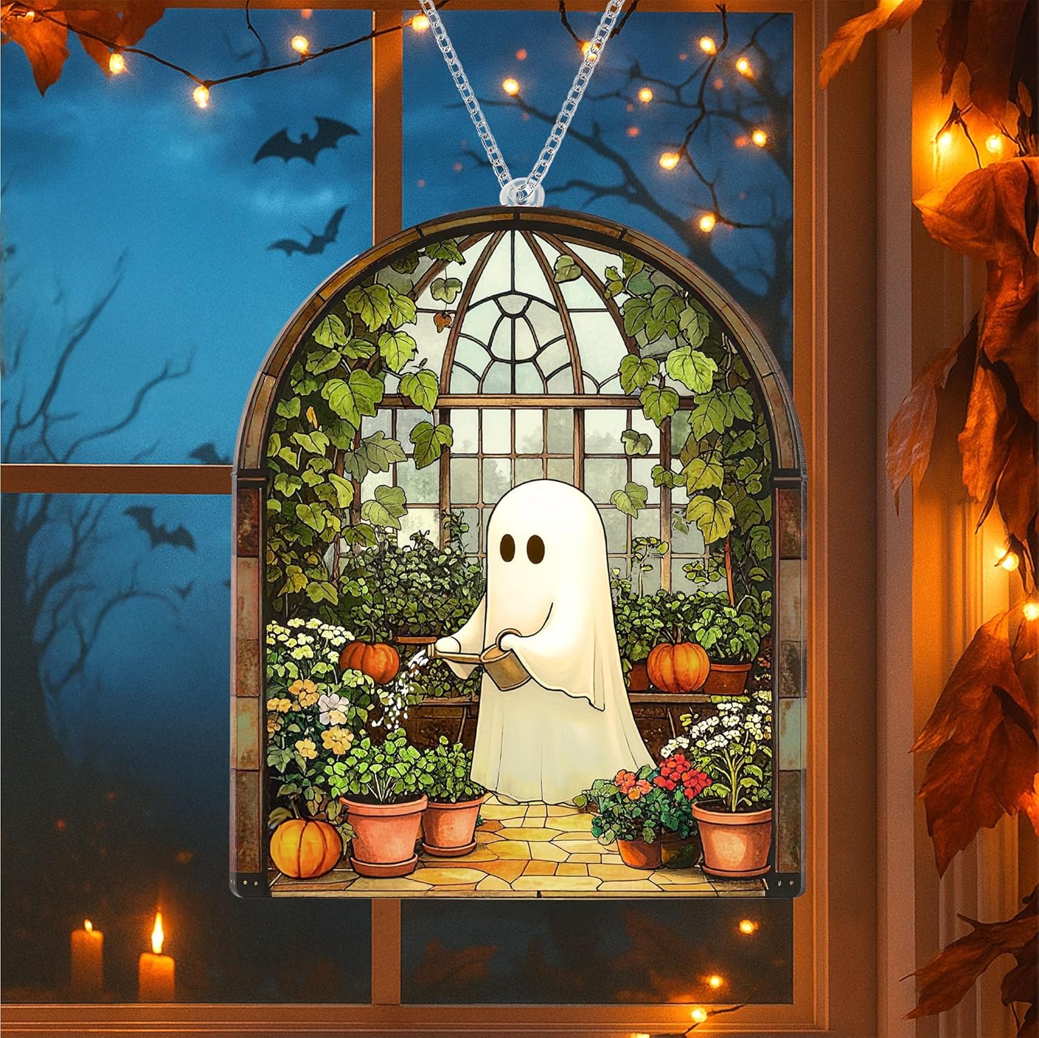 👻 Versatile Hanging Ghost Ornaments – Works as halloween stained glass ghost suncatcher or halloween hanging ghosts for garden, porch, or indoor home decor.