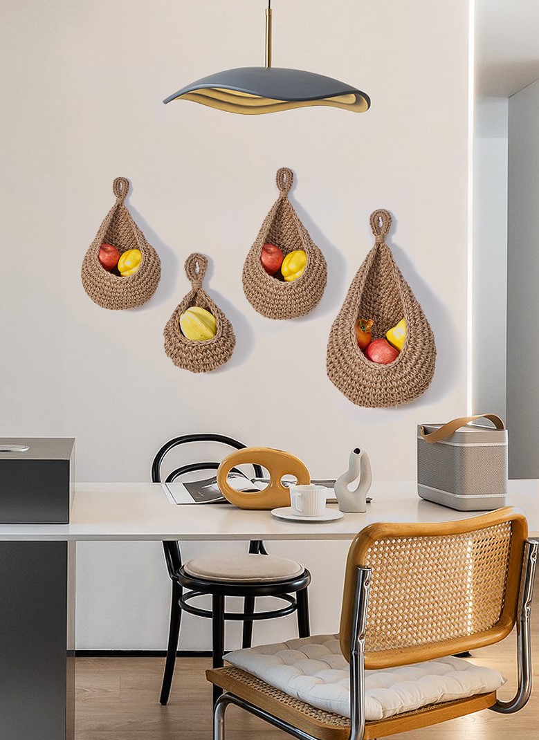 Tired of the same old plastic storage? Try this woven hanging basket 🍎! Simply place fresh fruits and vegetables inside; it serves as both storage and decoration. Seeing this natural texture while cooking makes the cooking experience more enjoyable.