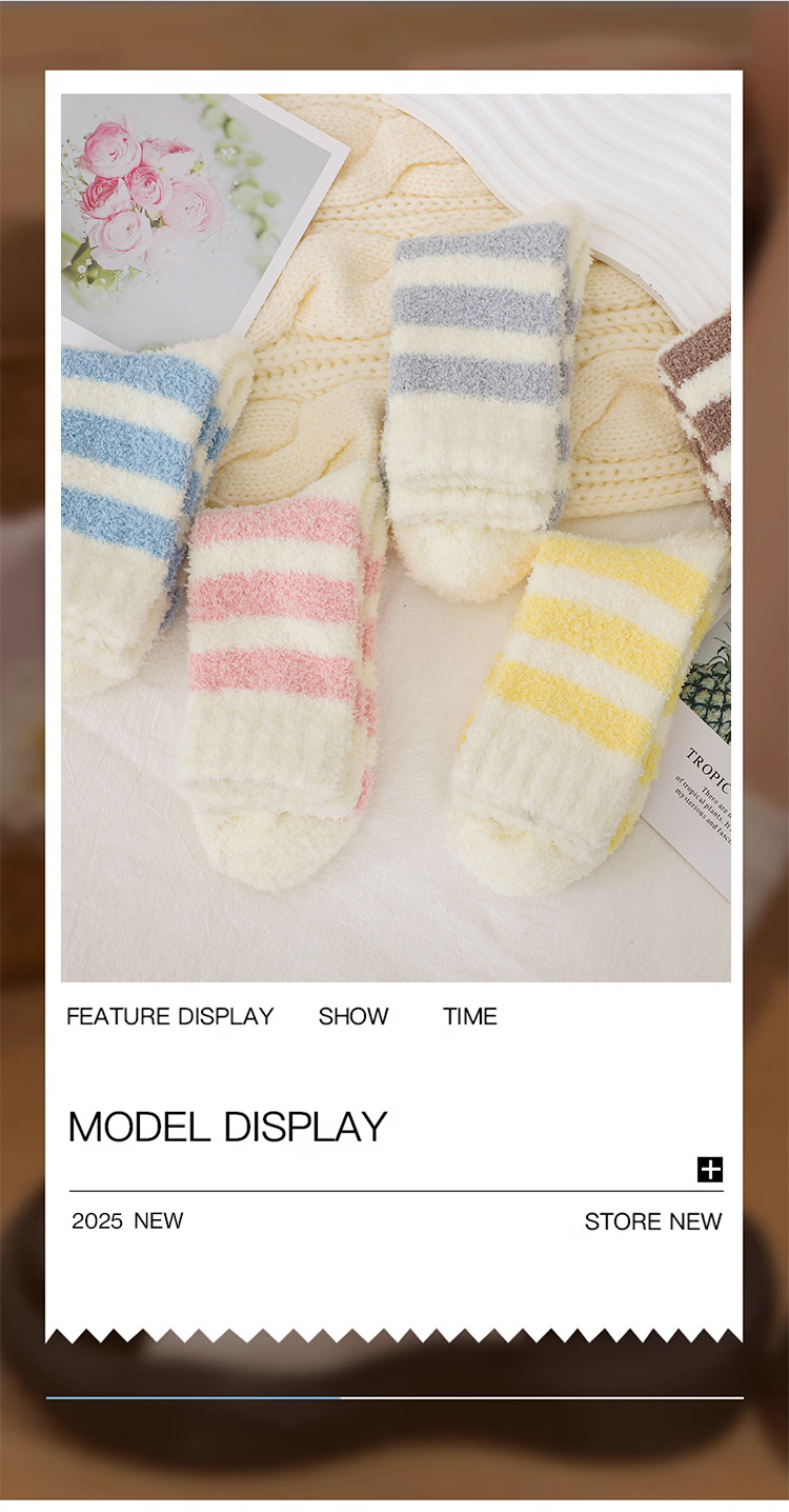 Each pair of these socks is designed with a sophisticated color palette, featuring elegant stripes that add a touch of timeless charm. The combination of colors is carefully curated to exude a sense of high - end fashion, ensuring that these socks are not just a practical accessory but also a stylish statement piece. Whether you're lounging at home or stepping out in style, these socks will elevate your look with their understated luxury.