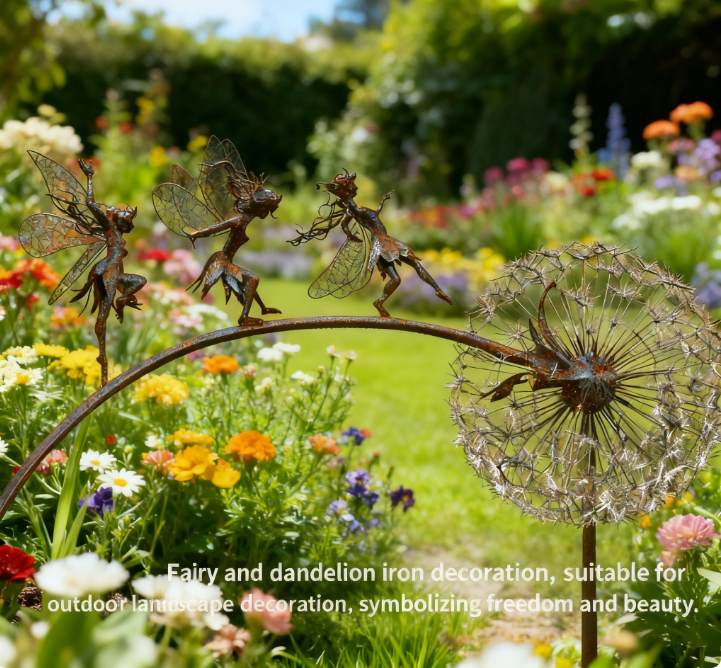 This metal fairy and dandelion sculpture is a masterpiece of artistic ingenuity 🌟. Forged with meticulous attention to detail, each curve of the fairy’s wing and every delicate seed of the dandelion is crafted to perfection, transforming your outdoor space into a gallery of whimsical elegance. It’s not just decor; it’s a conversation-starting work of art that elevates any landscape with its refined, handcrafted charm ✨.