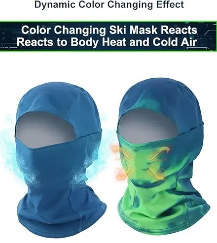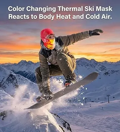 This ski mask blends cozy warmth with heat/cold-reactive color tech 🧪: sleek tones shift to vivid hues mid-adventure. Performance wear that stuns visually too. ⛷️