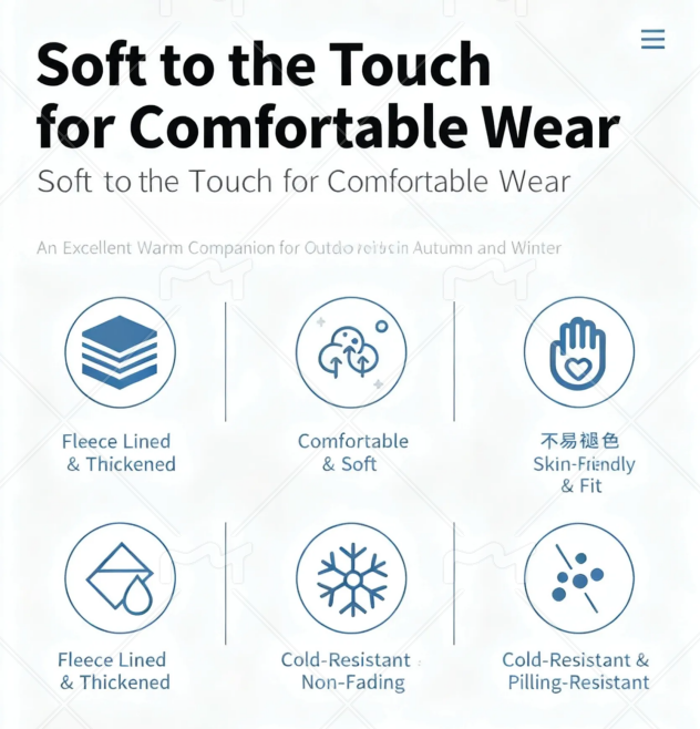 This product, with its outstanding performance, is suitable for a variety of scenarios, making it an excellent companion for outdoor enthusiasts. Crafted from a thickened, fleece-lined material, it effectively wards off the cold, providing you with warm protection.