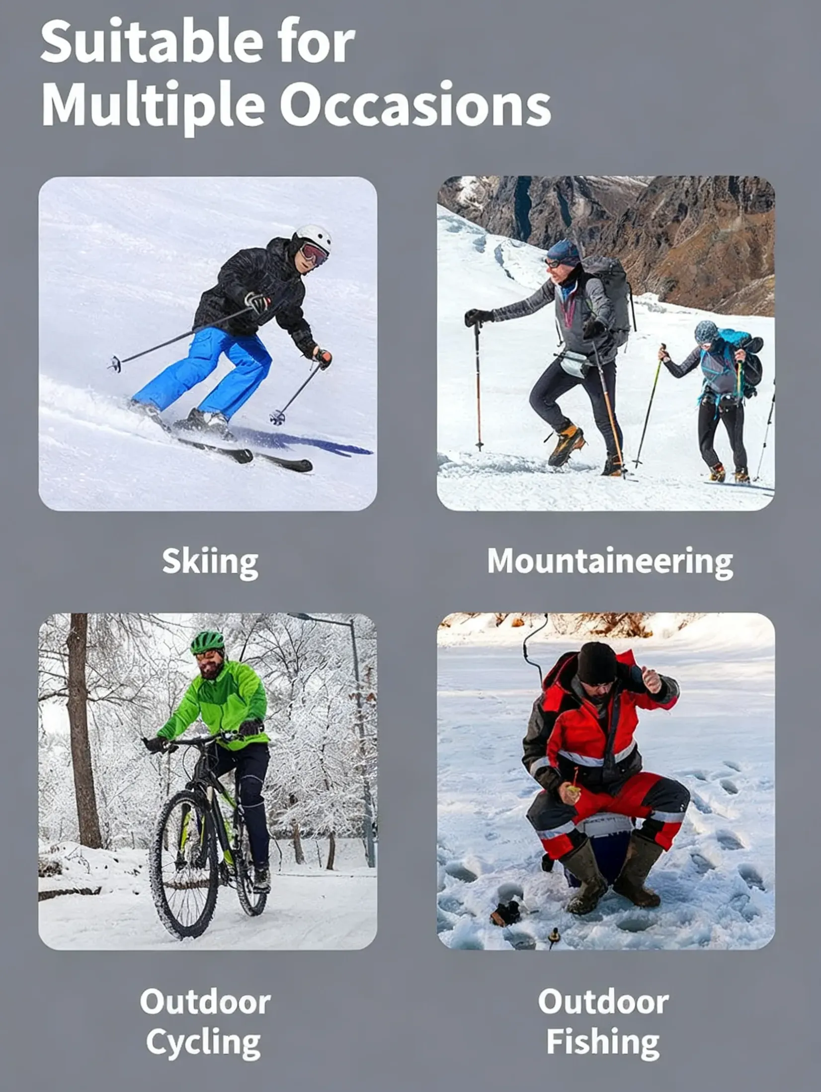 Whether skiing, where it shields against biting winds to aid your exhilarating descent down the slopes; or mountaineering, where it provides comfort as you conquer rugged peaks.